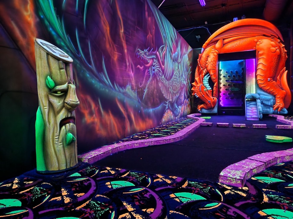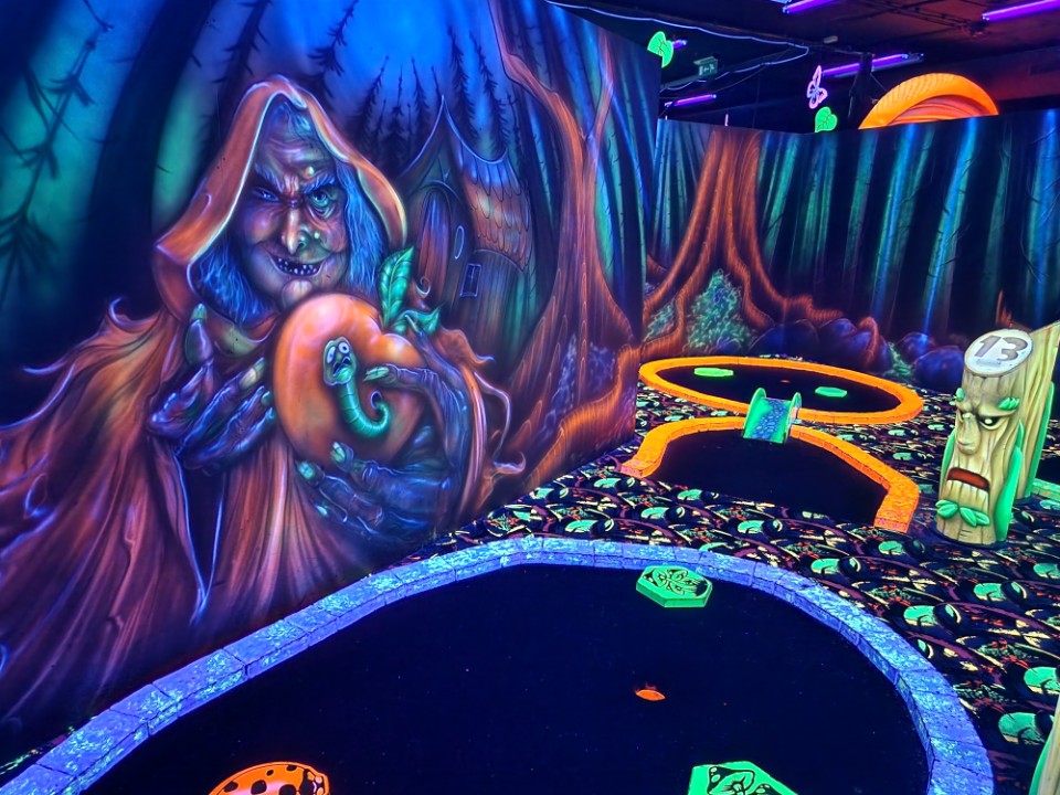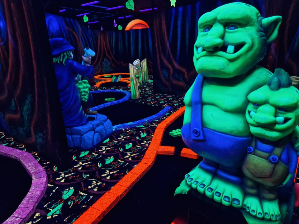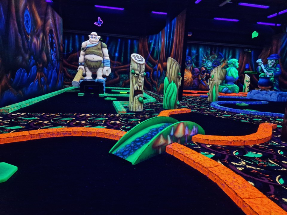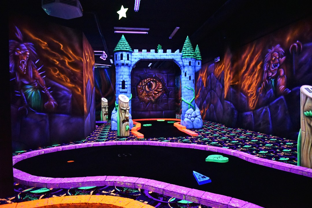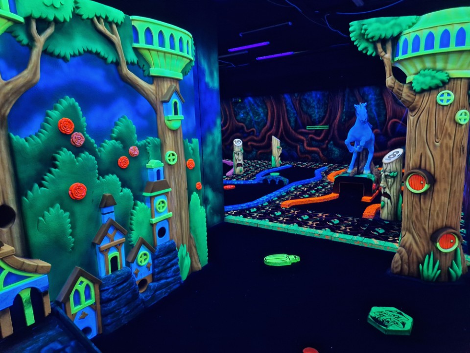 Speel 18 holes GlowGolf tussen 3D draken, tovenaars, heksen en trollen. Neem een selfie bij de levensechte 3D Eenhoorn na het scoren van een hole in one. Sluit je uitje af met een borrelplank en drankje.