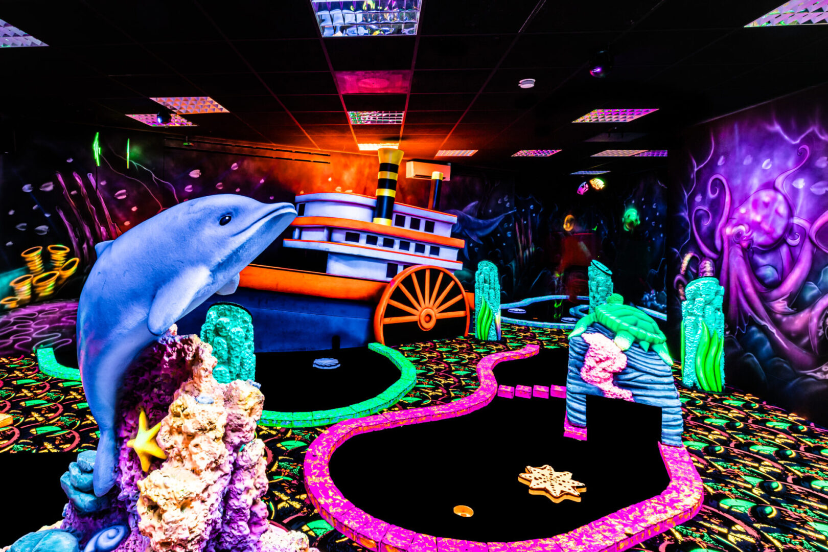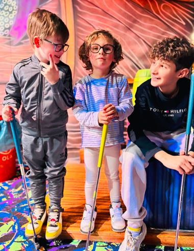 Zin in extra actie? Activeer de Challenge-knop en geef het rad een draai. Van trickshots tot hilarische opdrachten – elke hole krijgt zo een onverwachte twist. GlowGolf® is niet alleen mikken en rollen, maar ook lef en lol.